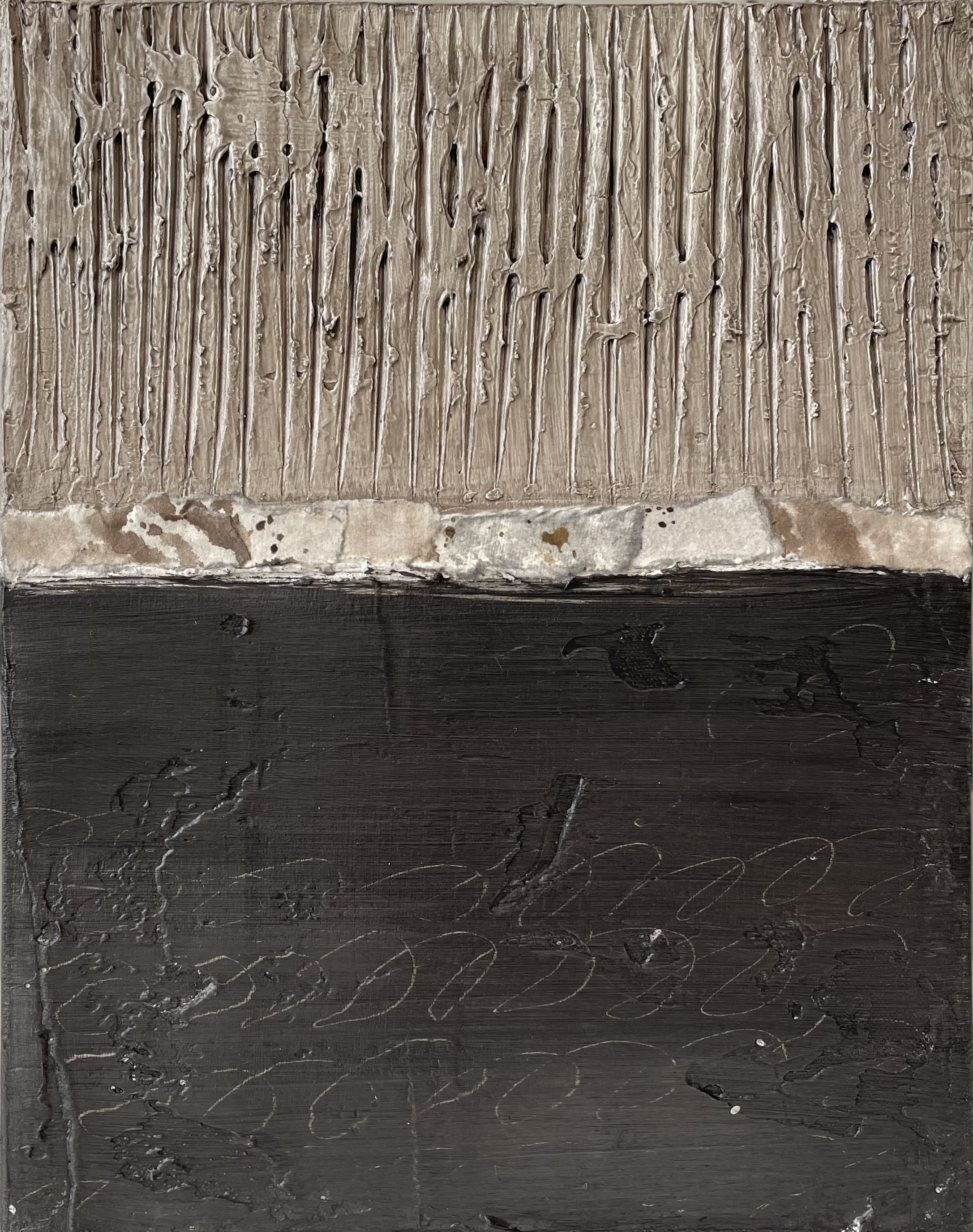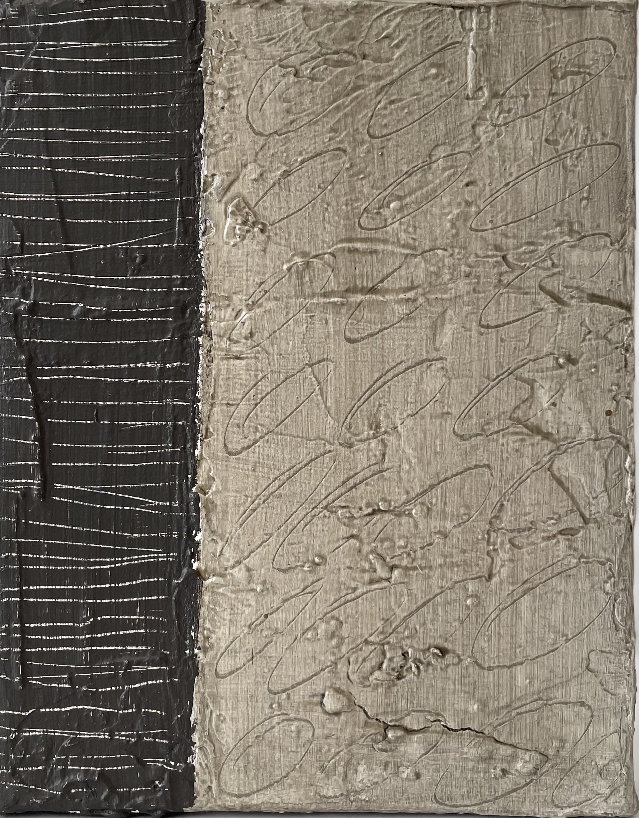 Texture plays an essential role in my process. I build surfaces slowly, embracing imperfections and unexpected marks as part of the story. Rather than aiming for perfection, I focus on creating pieces that feel honest, tactile, and emotionally grounded.